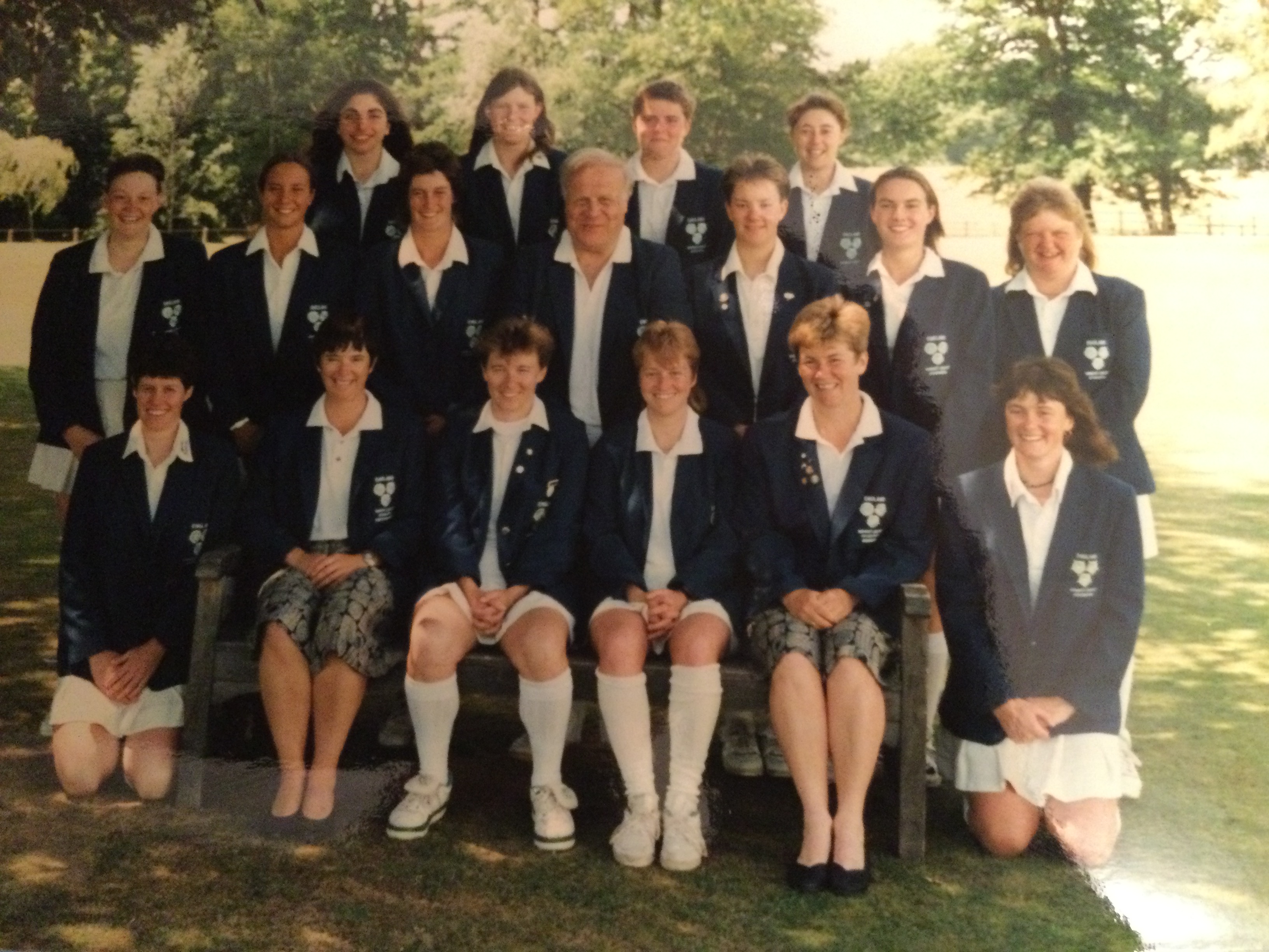 Middle row: Suzanne Redfern; Clare Connor; Helen Plimmer; John Bown (coach); Debra Maybury; Jane Smit; Debra Stock.