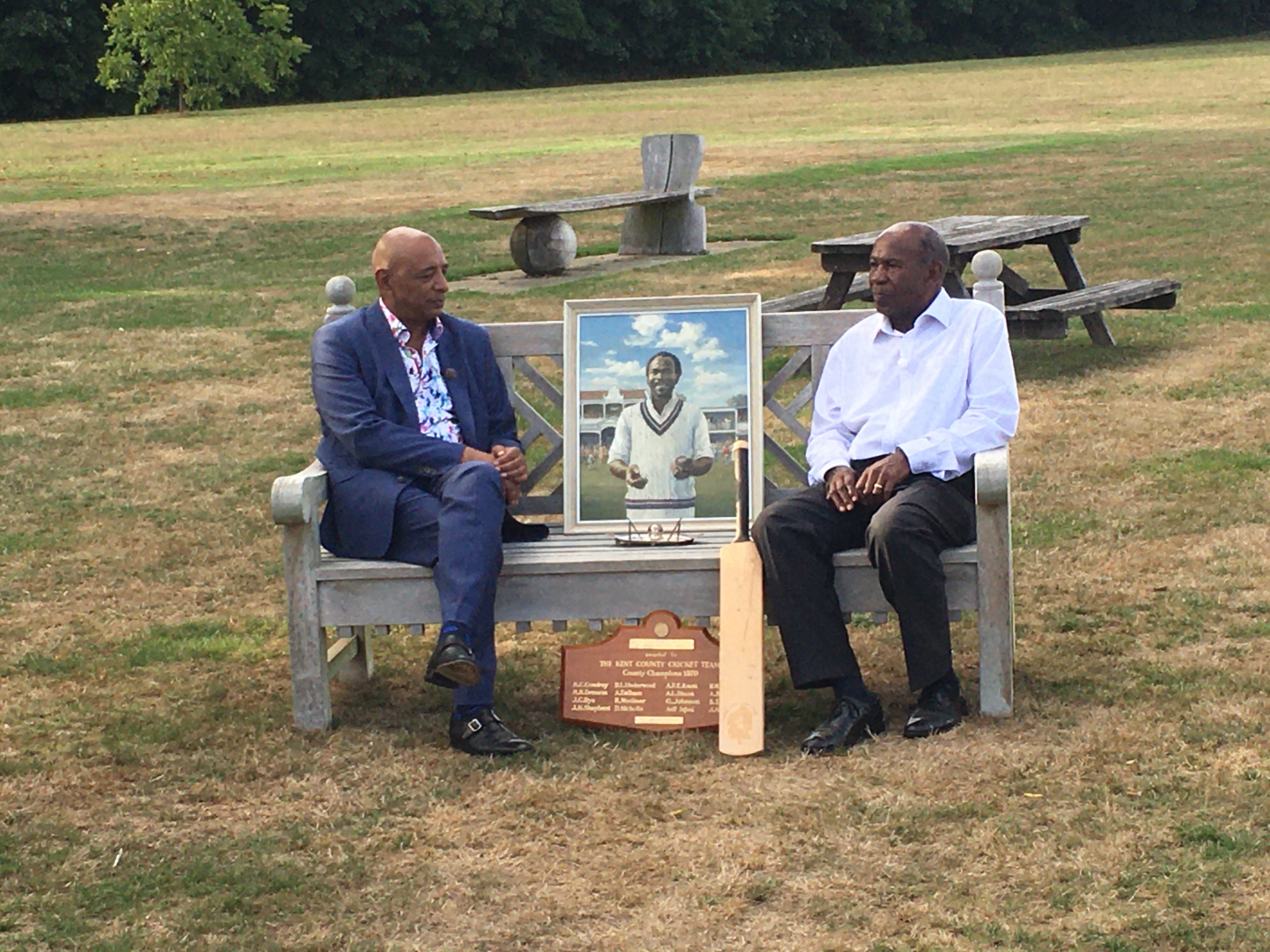 Then on 23 August, as Kent were edging out Lancashire in the final round of Royal London Cup matches to earn a quarter-final place, we were at Belmont House, the ancestral home of Lord Harris, where the Antiques Roadshow was being filmed. The production team had asked us to bring along some mementos of cricket and Lord Harris, so that there would be a chance to talk about the influence of the 4th Lord H on Kent. This we did, and even persuaded one of Kent’s all-time greats, John Shepherd, to be the one to talk on air to Roadshow expert Raj Bisram, who turns out to be Farokh Engineer’s nephew. They had a great conversation, which I am sure will have to be edited down for the final programme, unless they extend it to a two-hour show. Among the items that they talked about was a wooden wall plaque, which contained the Edward Hardy Gold Medal, presented to Kent CCC in 1970 by the Association of Men of Kent and Kentish Men, in honour of their Championship title that summer. It lists all the players of 1970, and looking back over half a century, you can see what a superb team it was – Cowdrey, Denness, Luckhurst, Knott, Underwood, Shepherd, Asif, Ealham, Woolmer, Johnson and several more. What a side! But we know very little about this particular item, and it appears the Association of Men of Kent and Kentish Men know very little about it either, so if anybody has any idea what its significance is, or who Edward Hardy is or was, we would be very happy to hear from you.