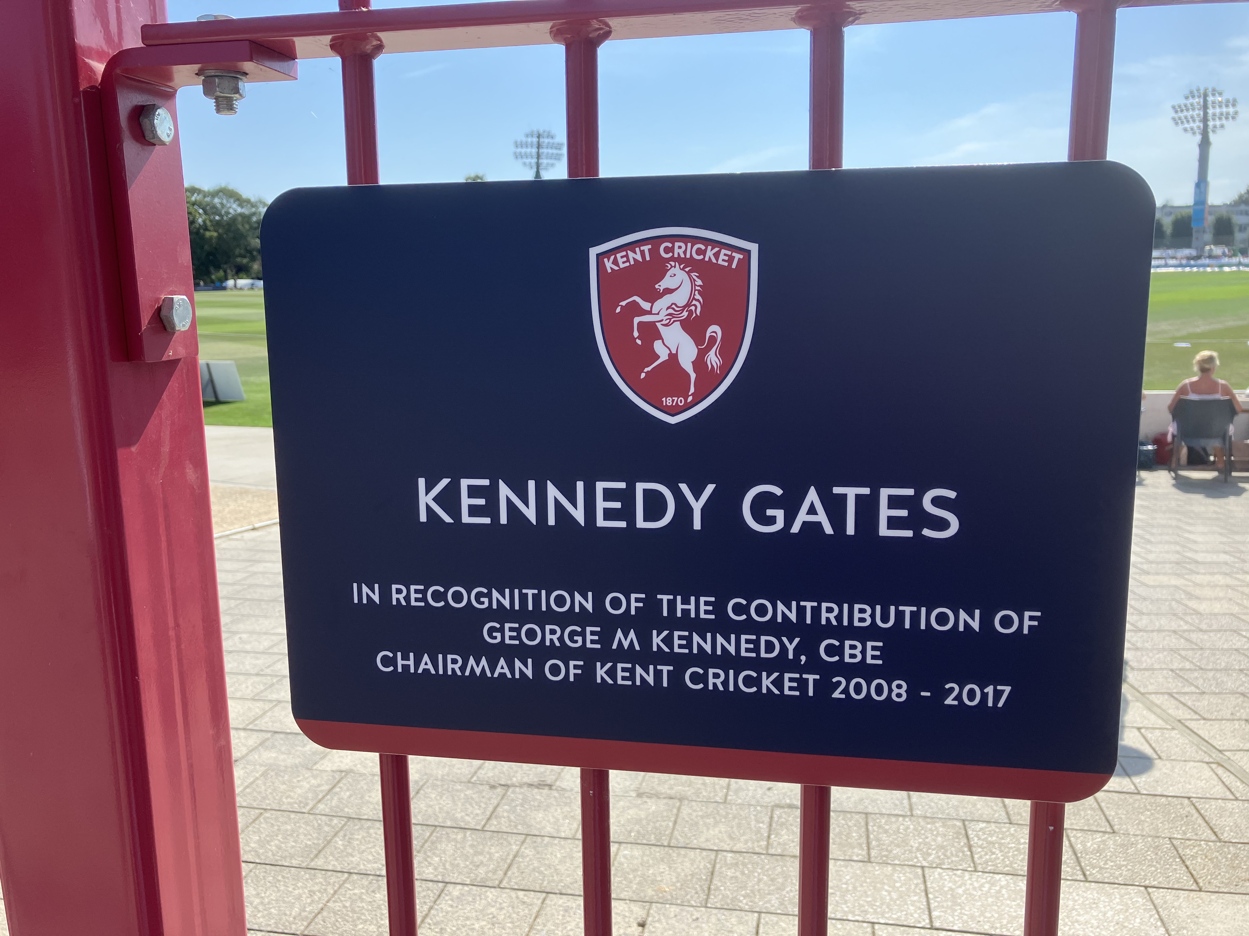 When the new gates were being planned, it was decided to name them for George Kennedy, past chairman and president of the club, and major benefactor during the financially difficult early years of this century. It is quite likely that without George’s generosity, the club would have gone to the wall, and top class cricket in Kent with it.